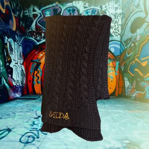 Echarpe 100% laine motif torsadé 290g..........Bonnet 100% acrylique 38g le tout avec la broderie fine Selda